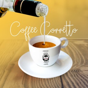 Caffè corretto: è una comune definizione usata per indicare un caffè espresso con aggiunta di una piccola quantità di un superalcolico da specificare al momento dell’ordine; solitamente si usa grappa o sambuca; il caffè può essere servito in tazzina. (o bicchierino) con tanto di alcolico già versato, oppure con alcolico separato. Di recente lo si può correggere anche con lo zabaione, un mix di dolce e alcol.